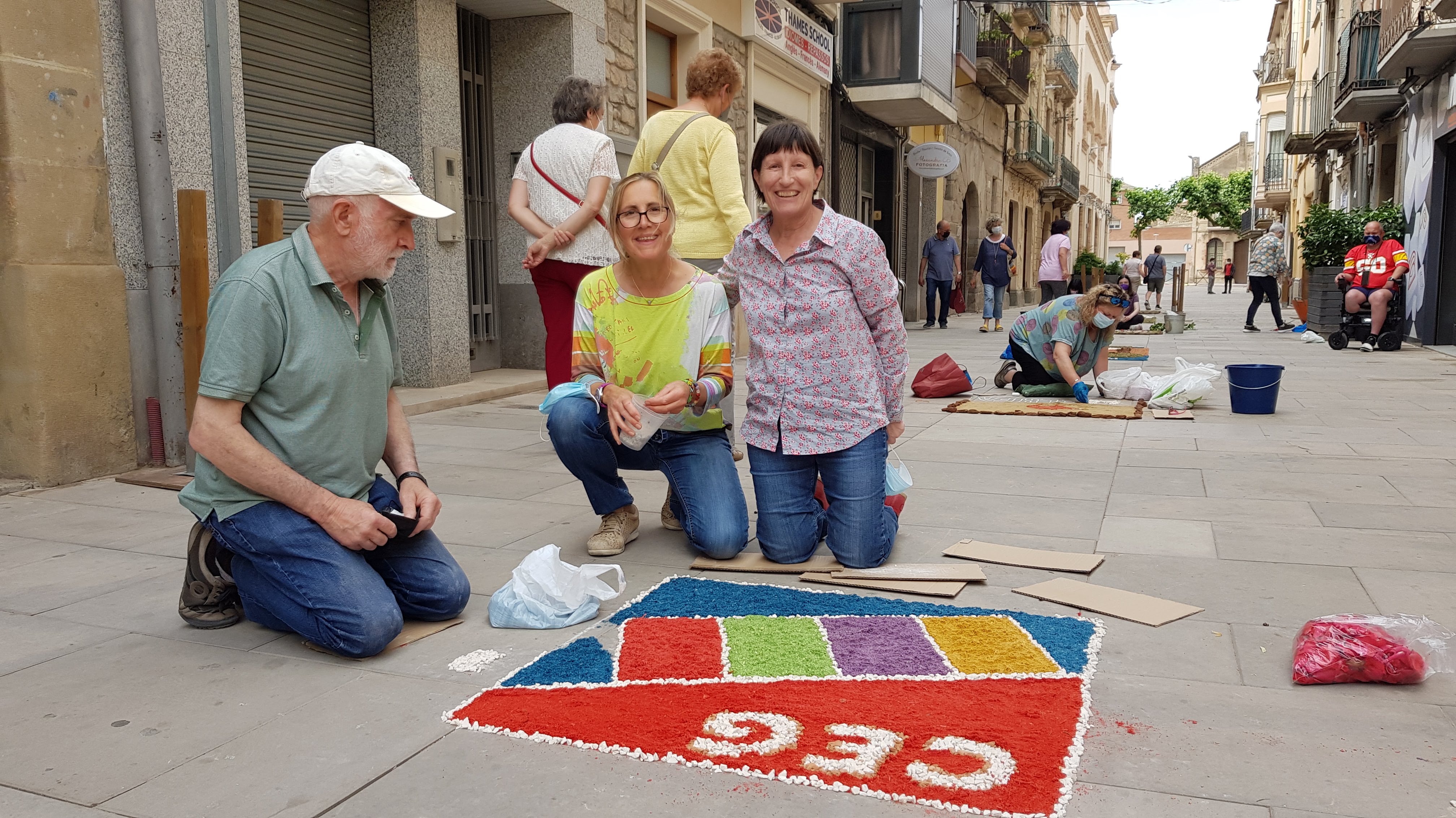 Així doncs, una dotzena de catifes d'elaboració d'entitats i dissenyades per elles mateixes i una catifa popular han omplert tot el carrer de colors i de perfums, tot emmarcat d'un matí de dissabte festiu i de participació popular.