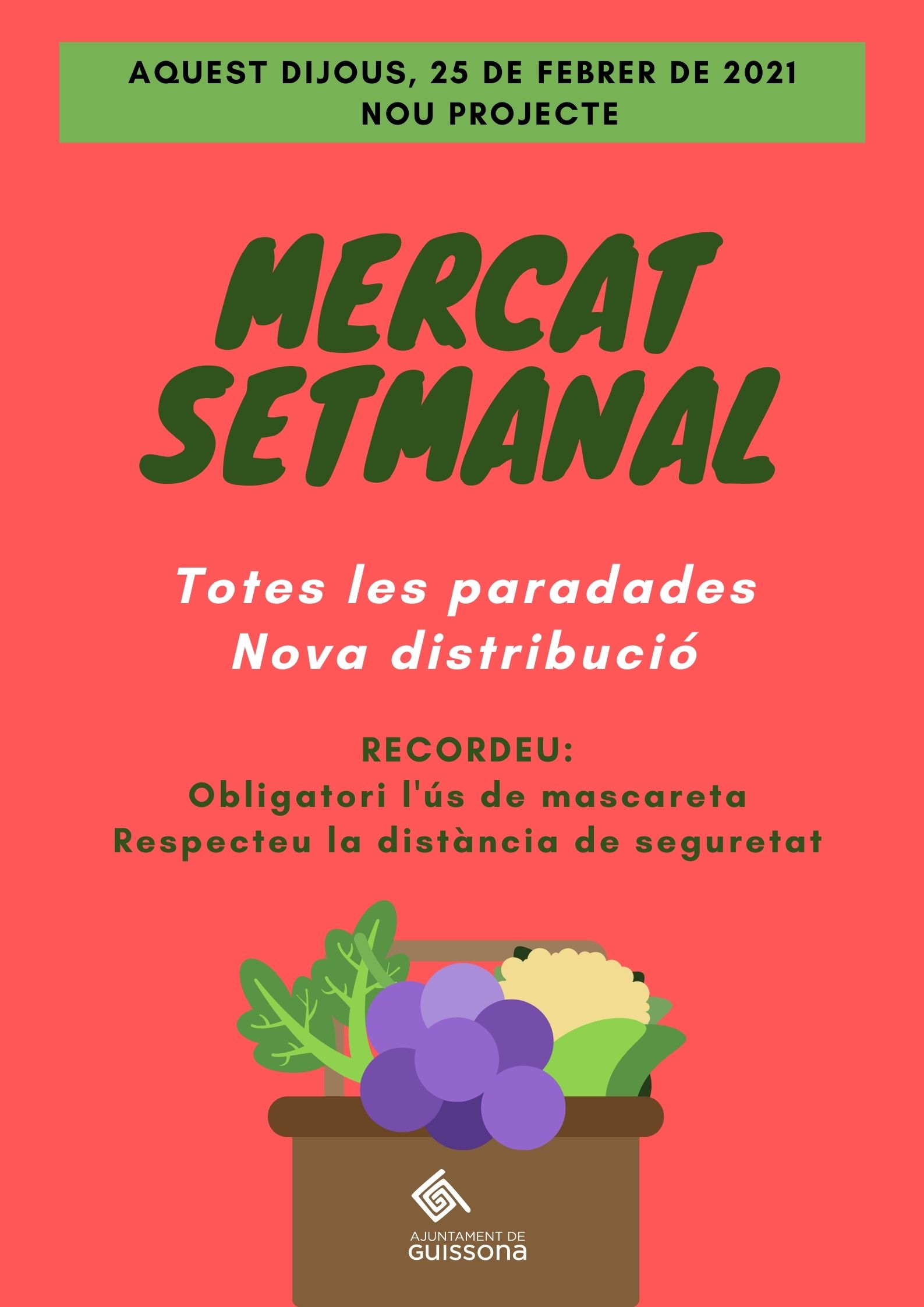 Després de deu mesos, Guissona recuperarà a partir d’aquest dijous 25 de febrer, el mercat setmanal amb totes les parades.