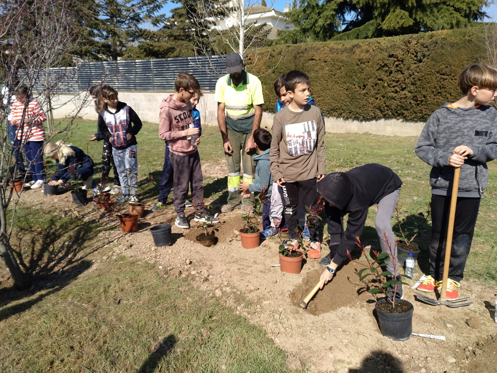 El divendres 1 de març, al matí, els alumnes de quart de primària de l’escola FEDAC Guissona, Ramon Faus Esteve i Ramon Estadella han realitzat una plantada d’arbres i plantes aromàtiques amb l’objectiu de celebrar el dia de l’arbre.