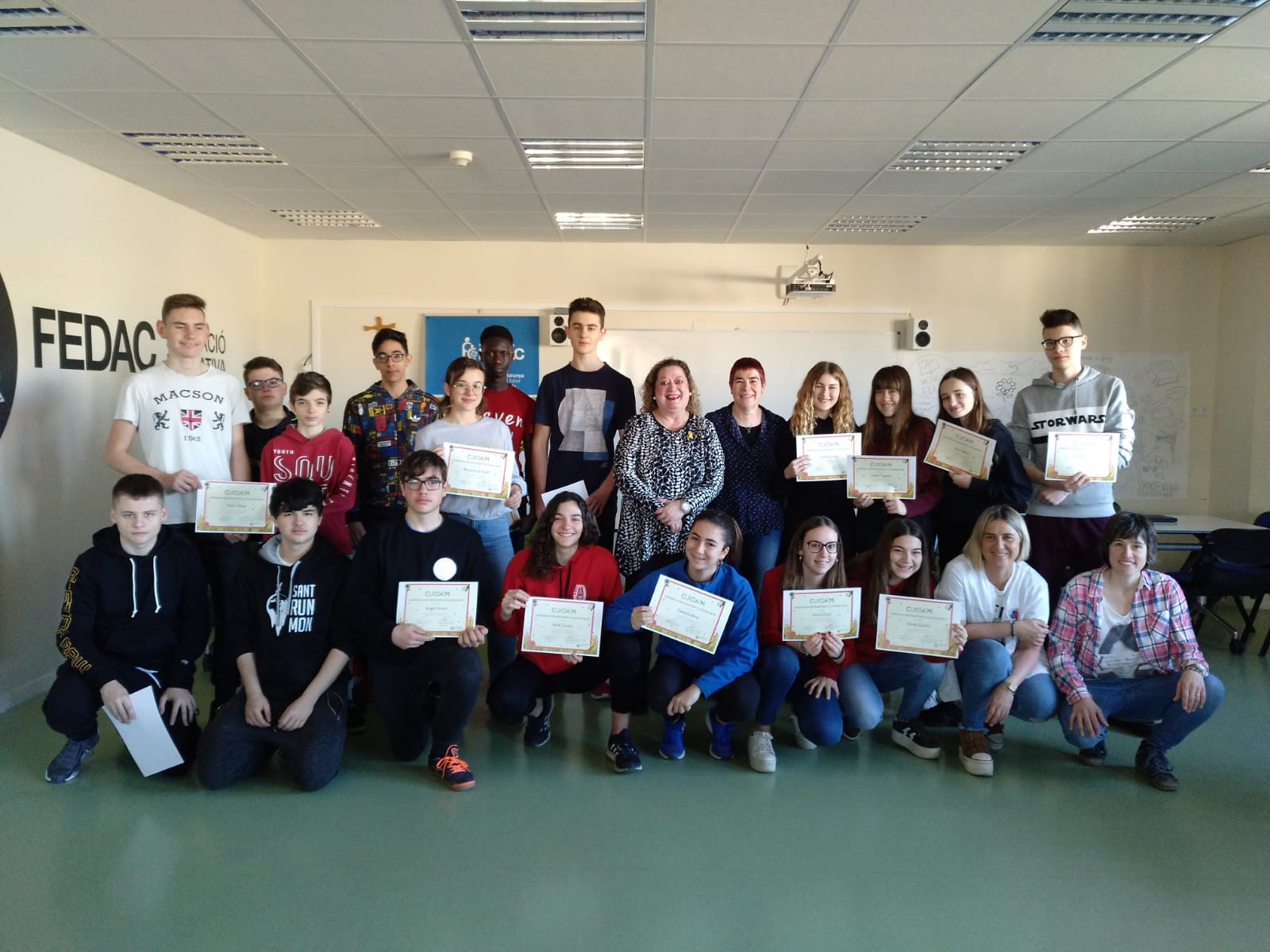 L’entrega del premi es va dur a terme el passat dilluns a les 9.00h del matí a la sala d’actes de l’institut FEDAC. La regidora d’educació, Gemma Franquesa, acompanyada de la regidora de festes M. Carme Farré, van ser les encarregades de fer entrega del premi i de felicitar personalment a tot l’alumnat i a l’equip de professorat.