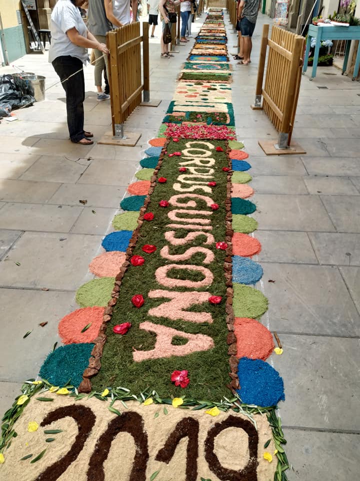 Per setè any consecutiu, el carrer Fluvià de Guissona ha estat ornamentat amb les tradicionals Catifes de corpus. Veïns i veïnes de diferents entitats, associacions o escoles, s’han volcat a elaborar diferents catifes florides en una jornada calurosa, però molt festiva i de participació popular.
