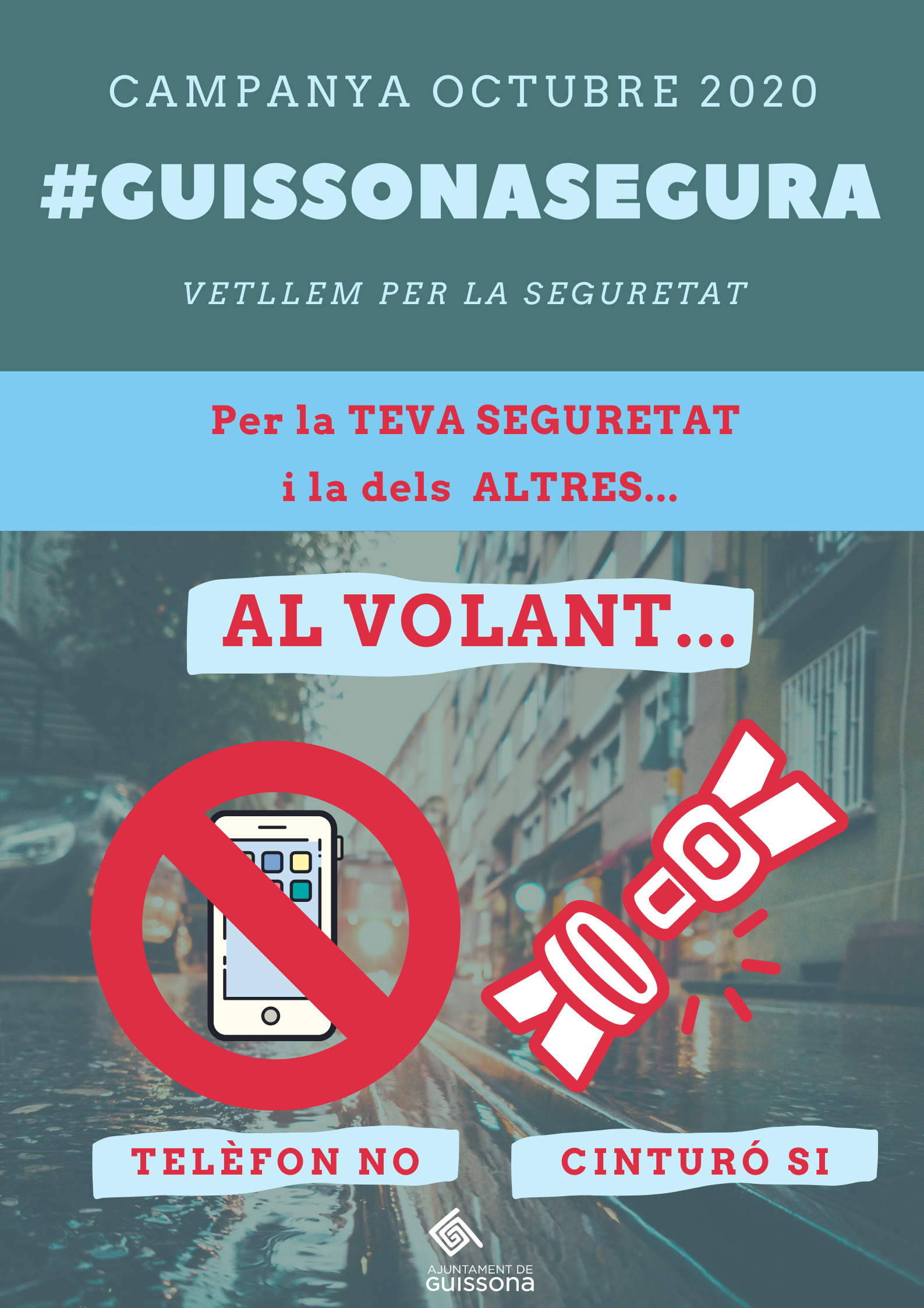 L'ajuntament de Guissona en col·laboració amb els Guàrdies Municipals i els Agents cívics, inicien una campanya mensual de prevenció i seguretat a la vila. Aquest mes d'OCTUBRE al volant TELÈFON NO, CINTRUÓ SI.