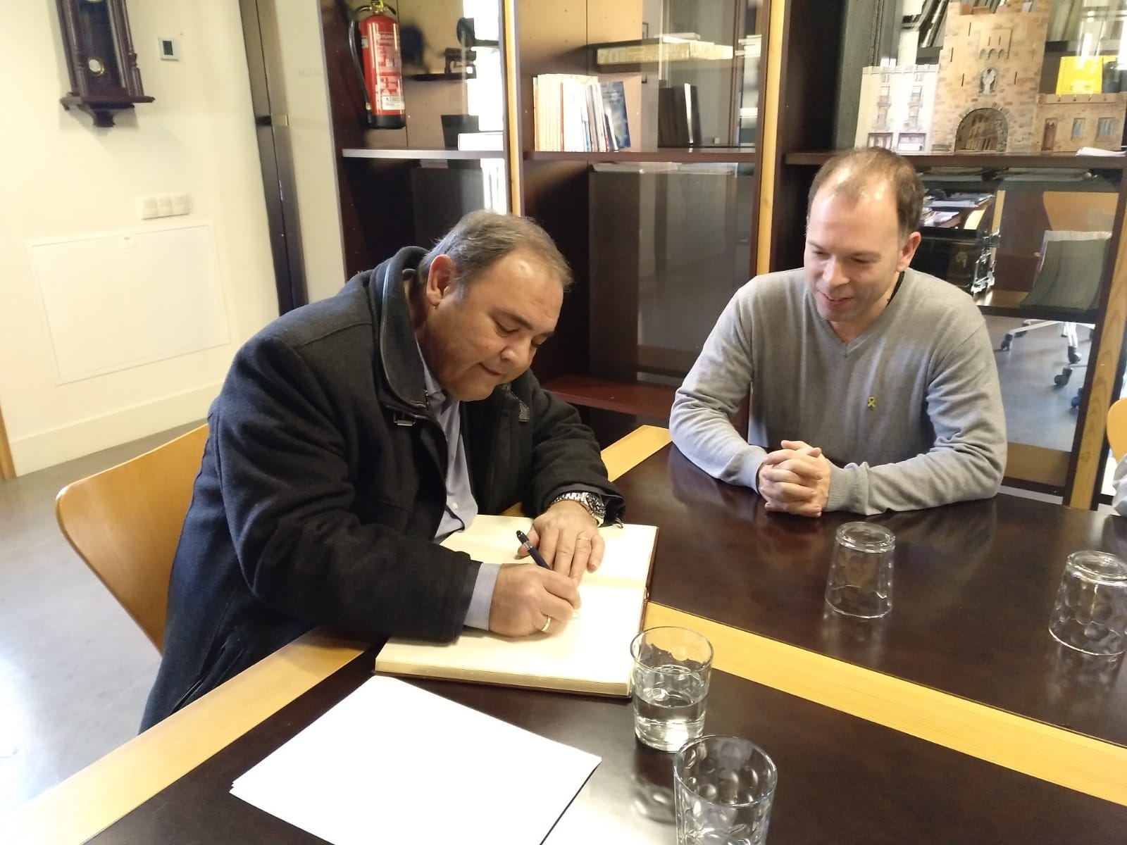 El passat divendres Guissona va rebre la visita del Sr. Jaume Montfort Samà, director dels Serveis Territorials del Departament de Justícia a Lleida. En la reunió, que va tenir lloc a l’Ajuntament, es van tractar temes com el d’establir el servei d’interinatge, que ha d’assumir la conselleria de justícia amb el jutjat de pau i el registre civil. En aquest sentit, pel nombre de població que te Guissona, hauria de tenir dos funcionaris assumint tasques que fins ara, estan assumint personal propi de la corporació municipal.