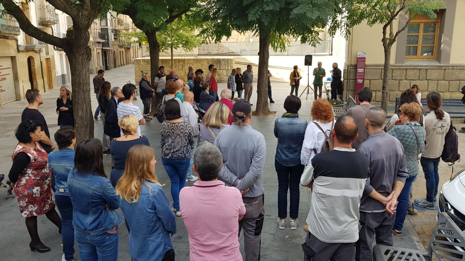 Guissona s'ha aturat avui a les 12h del mig dia davant de l'Ajuntament amb la lectura del manifest, i també davant de diferents empreses... per donar suport als presidents de l'ANC i Òmniu cultural, Jordi Sànchez i Jordi Cuixart, respectivament, després de l'ingrés a la presó de tots dos per un presumpte delicte de sedició.