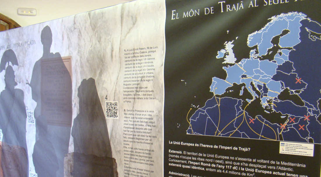 L’exposició dóna a conèixer el passat romà del territori ponentí, fent una passejada per diversos escenaris de la vida quotidiana de l’època de Trajà (les ciutats i el territori, la llar, la taula i l’exèrcit) amb els objectes d’ús quotidià. En l’itinerari, tenen un especial protagonisme alguns personatges de la zona que reflecteixen, a través de la seva vida, la societat i política de l’època.