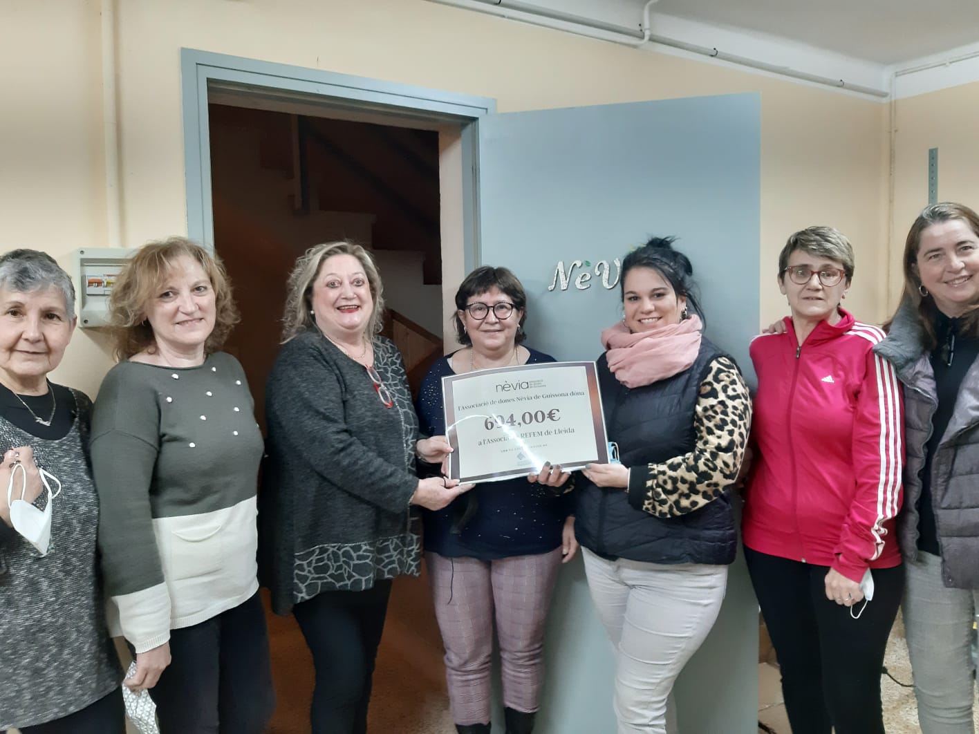 El passat 25 de novembre, l'Associació de Dones Nèvia de Guissona, va organitzar una caminada amb l'objectiu de recaptar fons per ajudar a dones en situació vulnerable. Ahir dimecres, 2 de febrer, es va fer entrega dels 694.00€ que es van recollir, a l'associació REFEM de Lleida, que atén i acull dones en situació d'urgència.