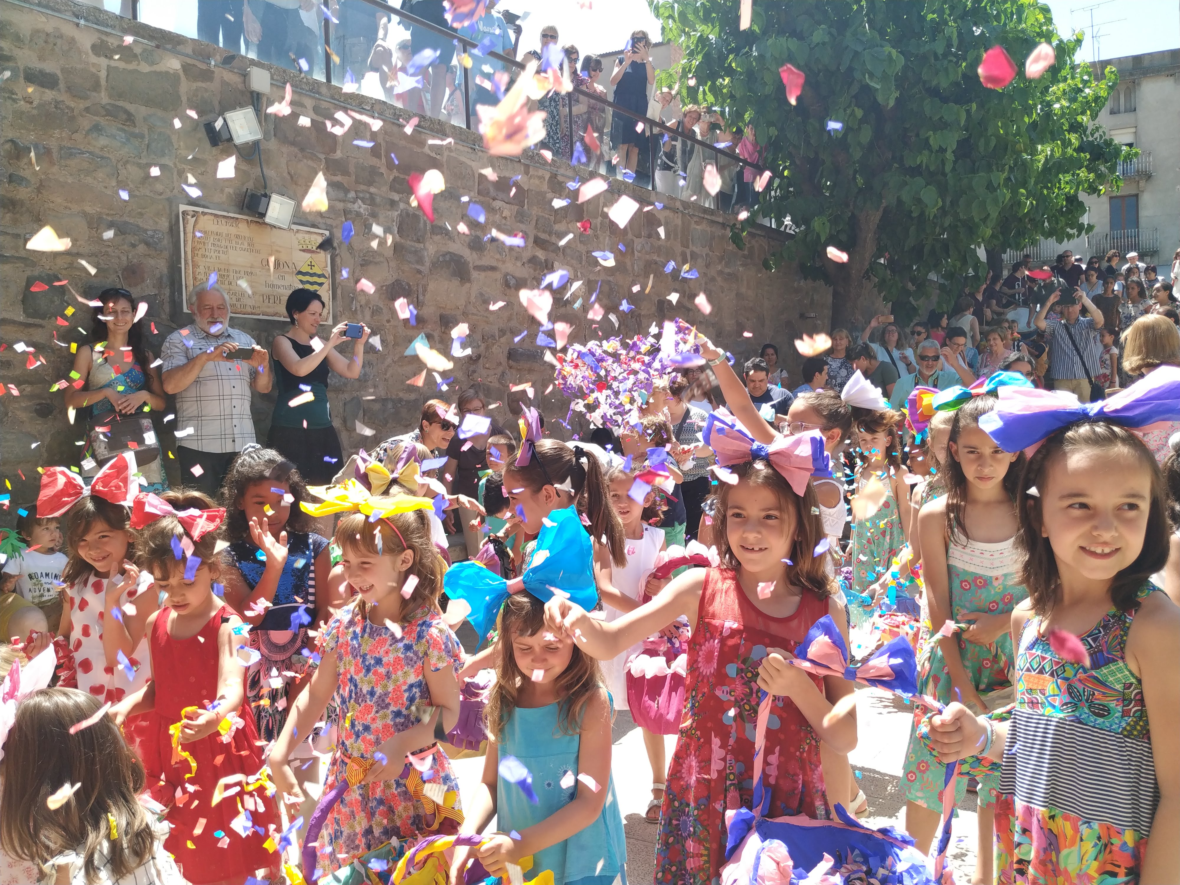 A la missa de 12 es van beneir les paneres de flors i les coques, després de la missa les nenes van oferir una pluja de pètals de rosa i paperets de colors a la verge de la font, després les coques dels nens es van repartir entre tots els assistents, a la plaça Vell Pla, en un acte festiu, acompanyat d’una ballada de sardanes.