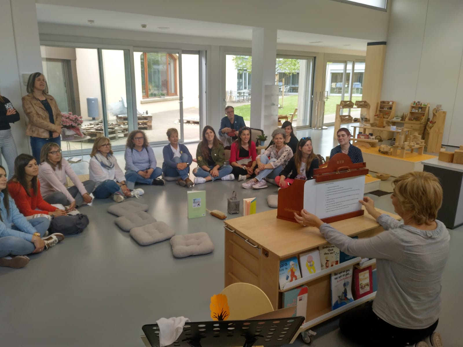 I cop completada la primera visita, l'equip es va traslladar a la UVic-UCC per conèixer l'Aula Teruca Buscart i l'Aula Montessori dels Laboratoris d'Infantil on, entre d'altres aspectes van conèixer l'interessant recurs de la petita biblioteca per treballar les primeres literatures, per donar valor i viure la literatura amb els infants de la mà de la Marta Camps. I també van tenir l'oportunitat de centrar la mirada a conèixer més de la vora els principis de la pedagogia montessori tot visitant-ne els espais que allà hi ha muntats acompanyades per la Berta Vila.