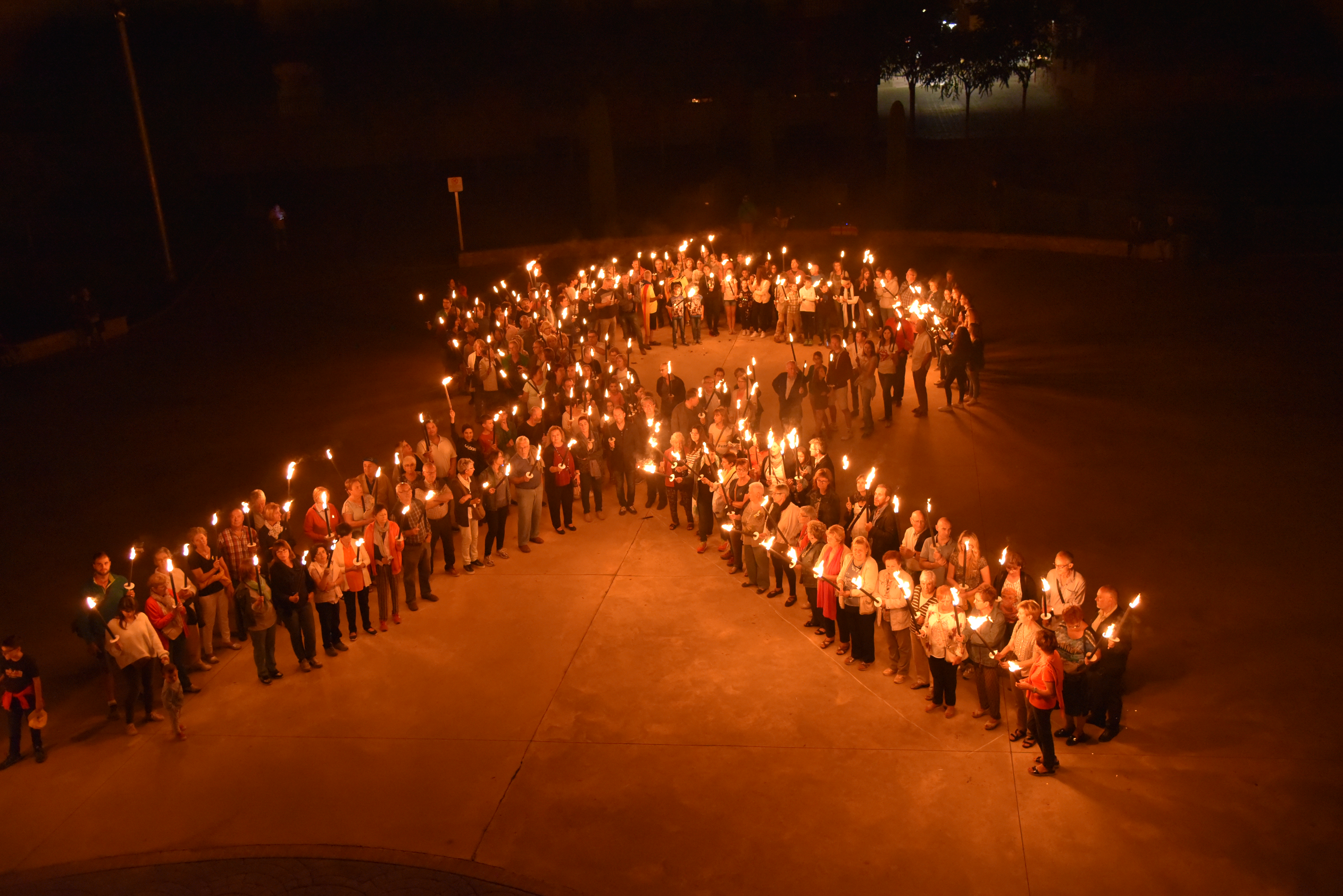 Els actes de diada a Guissona van començar el dilluns 10 al vespre, amb la tradicional Marxa de torxes, que enguany sortia de la Plaça Major i arribava a la Plaça Mil·lenari, on es va fer un llaç humà amb les torxes i es va cantar els Segadors de la mà de la jove cantant Núria Rius i Ivet Fischer. Tanmateix es va innovar amb la cançó adaptada de “La cançó del Poble”del musical “Els Miserables”, de Claude-Michel Schönberg que porta per títol “Tot el poble cantarà”.