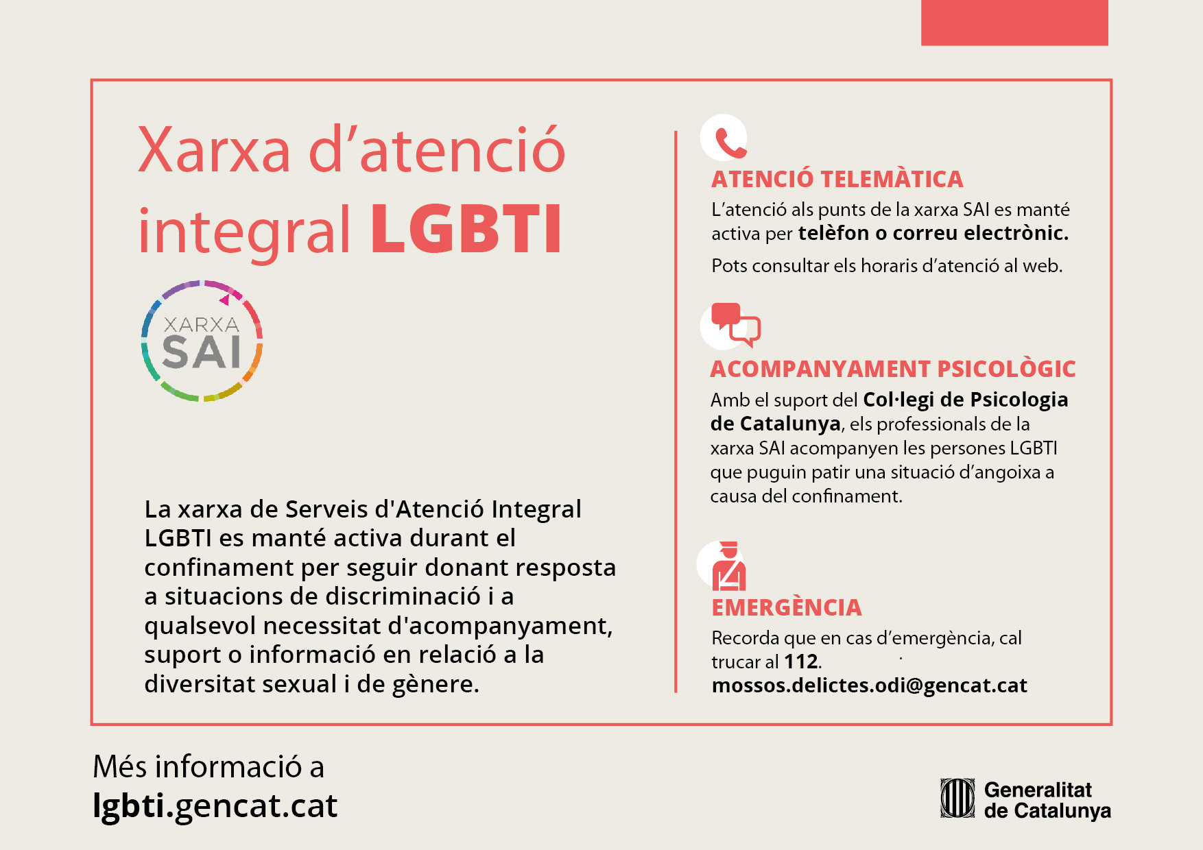 Des del SAI (Servei d’Atenció Integral) del Consell comarcal de la Segarra conjuntament amb la Direcció General d’Igualtat de la Generalitat de Catalunya s’ha programat una formació adreçada al personal del Consell i també altres administracions de la comarca, en el marc de la llei 11/2014, l’article 10 (formació) i 11 (deure d’intervenció) per a garantir els drets de les persones LGBTI i per lluitar contra LGBTIfòbia.