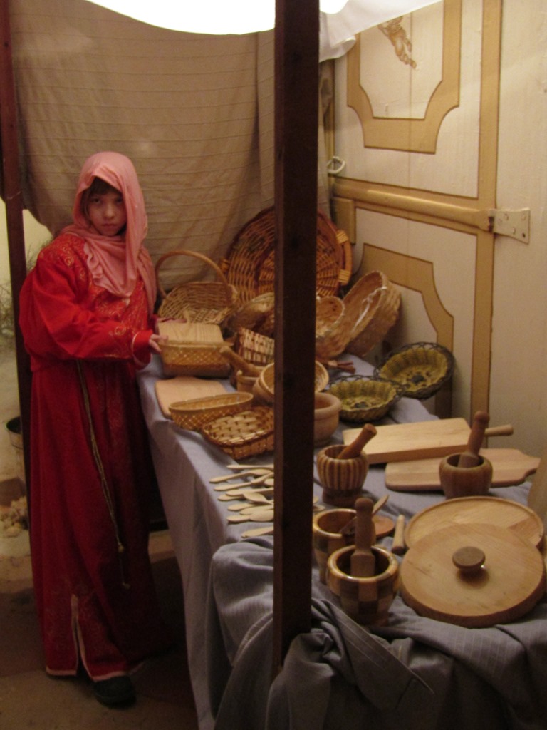 El pessebre vivent que s'ubica a les sales annexes a la capella del Claustre i que compta amb una quarentena de figurants explica diferents escenes relacionades amb el naixement de l'infant Jesús barrejades amb la vida quotidiana de l'època