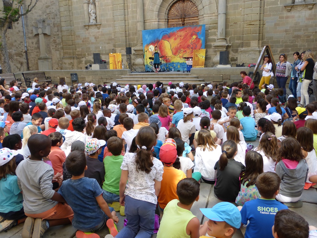 Gairebé vuit-cents nens i nenes han omplert en dos torns la plaça major, a primera hora amb un espectacle de personatges de contes fantàstics i d’instruments musicals per als més petits i en una segona sessió, amb un espectacle revolucionari de cantar, ballar, riure i jugar.
