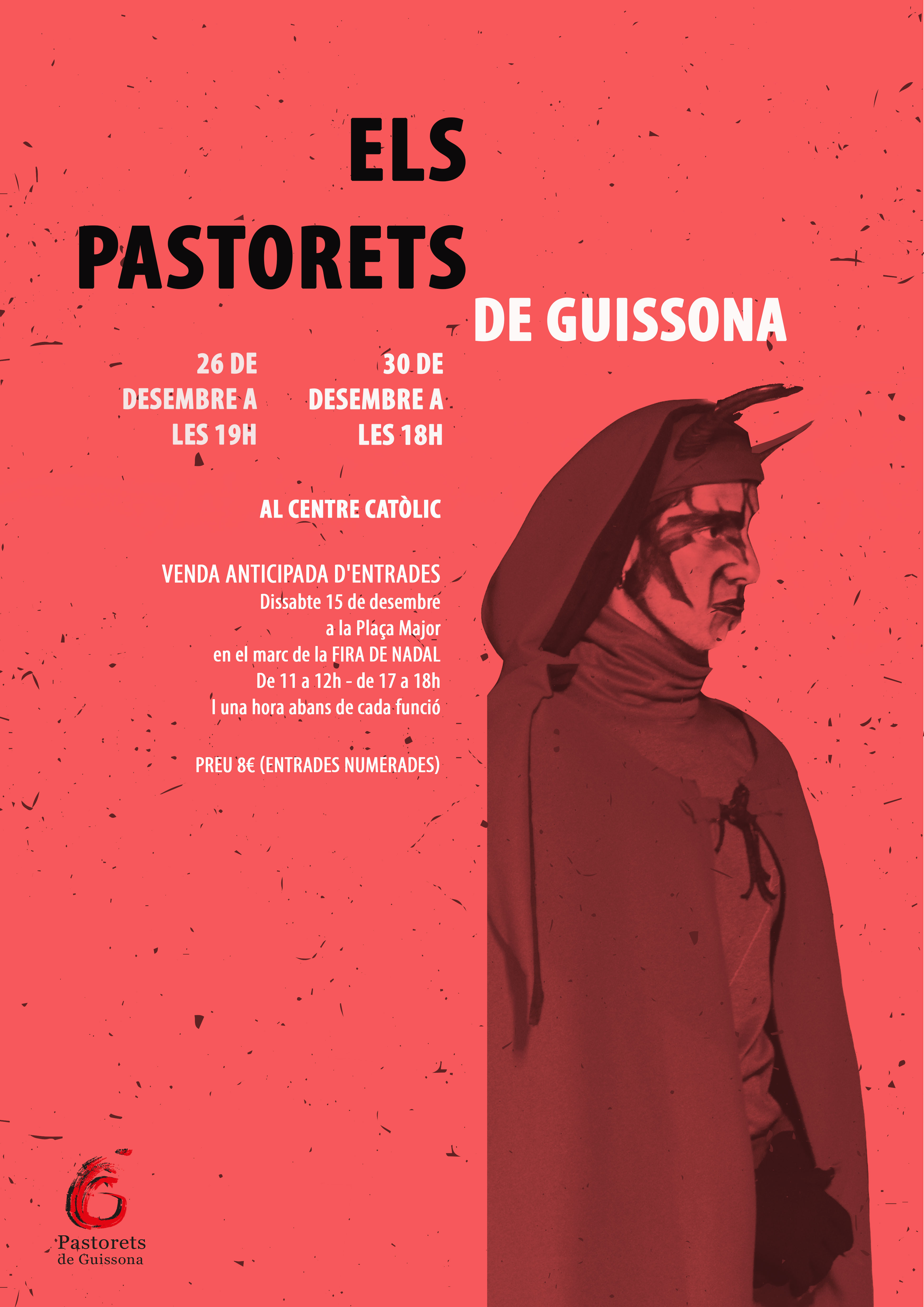 Un any més, i per tercer any consecutiu des de la seva recuperació, el proper 26 de desembre els PASTORETS DE GUISSONA recuperaran l’escenari del CENTRE CATÒLIC. Ho faran en dues representacions, el dia 26 a les 7 de la tarda i el dia 30 a les 6. Atès que l’aforament del centre catòlic és molt limitat, les entrades es vendran anticipades i numerades el proper 15 de desembre, en el marc de la Fira de Nadal a la plaça major de Guissona de 11 a 12h i a la tarda de 17 a 18h