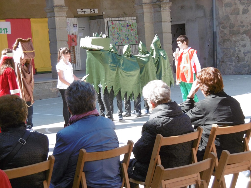 Els nens i nenes de sisè van representar la llegenda de Sant Jordi i a continuació els alumnes de p2 van compartir una estona de lectura amb els avis i àvies
