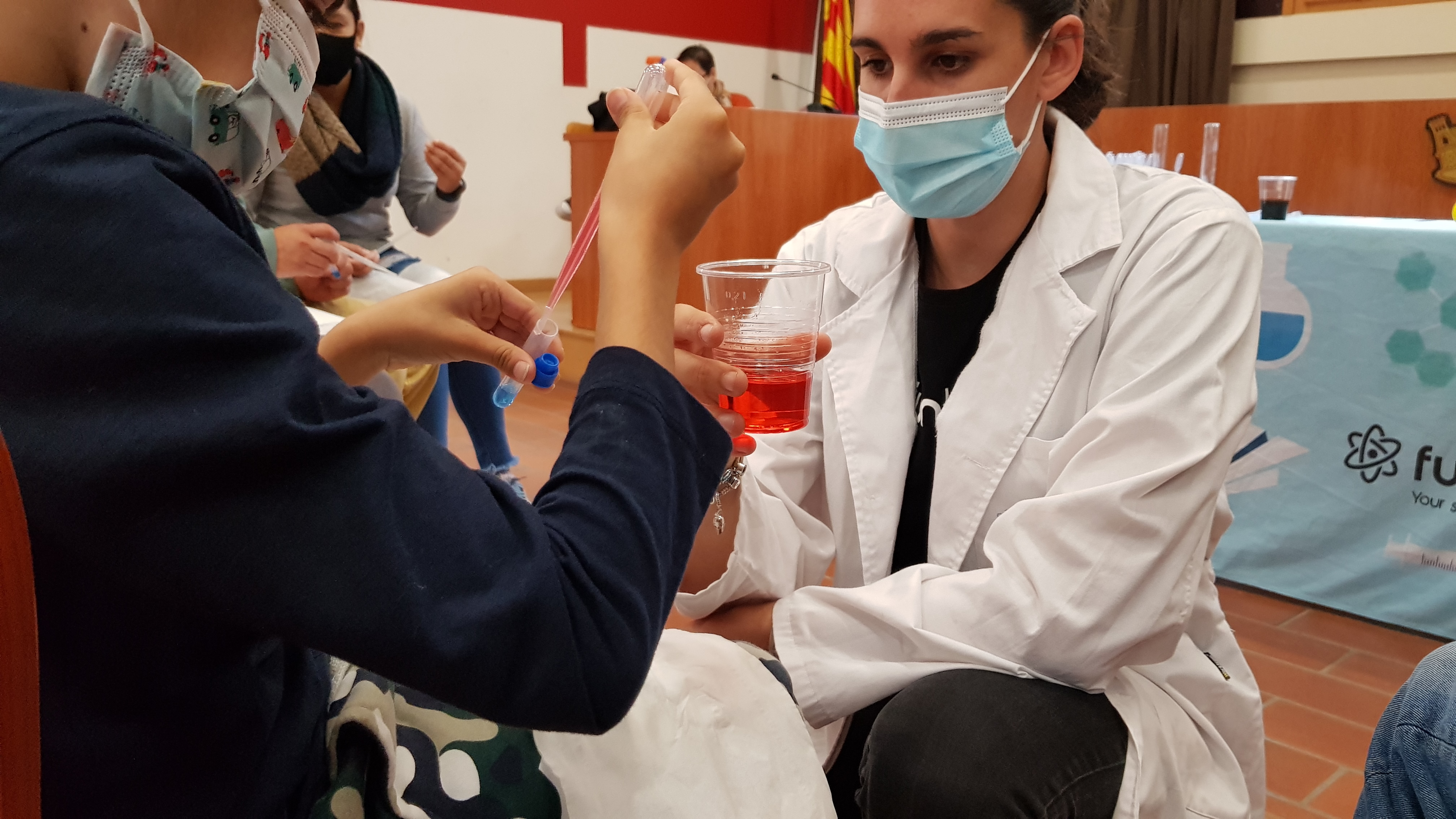 Un matí de tallers en els que, seguint les mesures de seguretat de la Covid-19, amb grups reduïts de tres famílies i unint grups bombolla, en la mesura del possible, petits i grans han gaudit al màxim de la ciència.