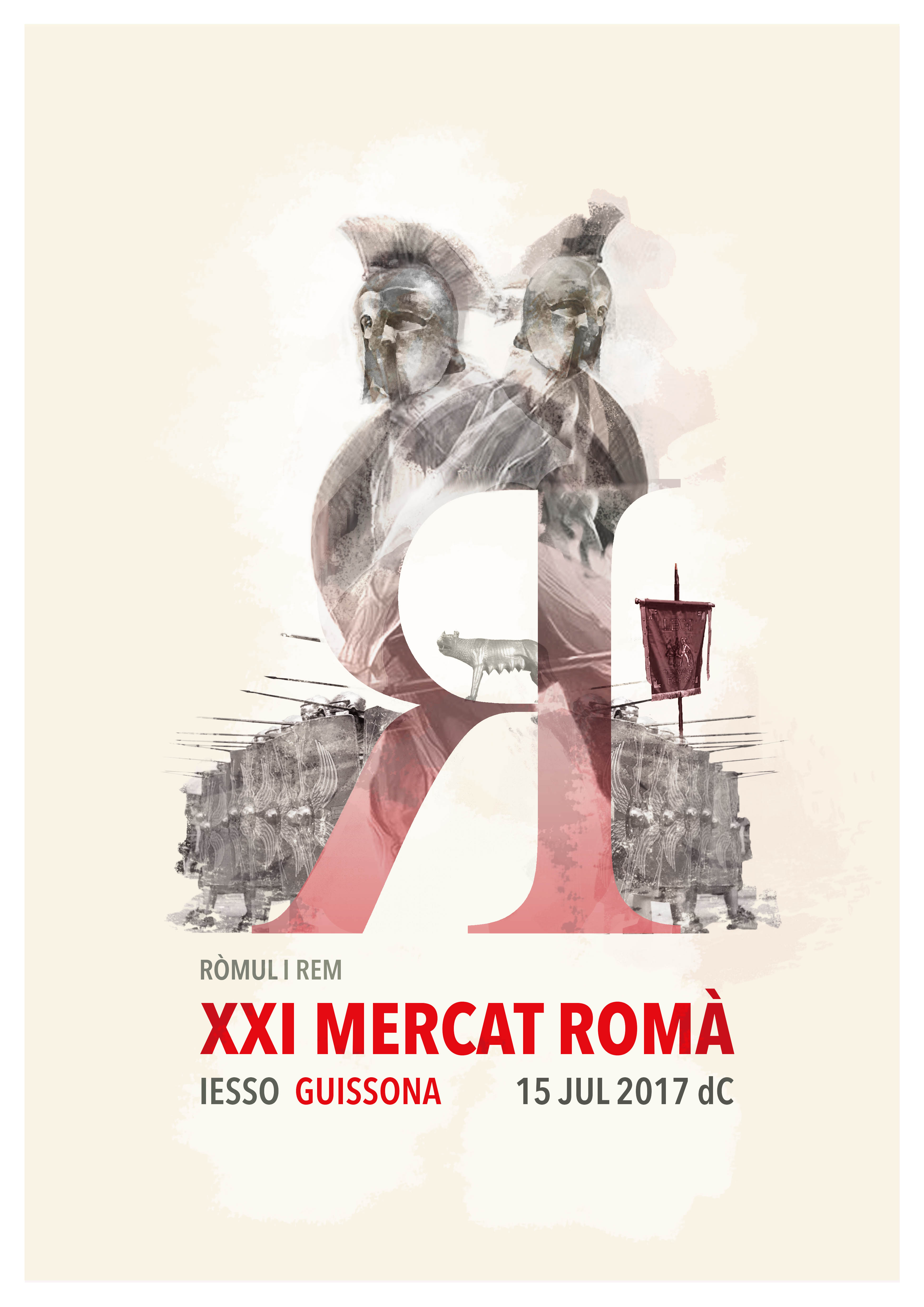 El imatge de la festa, seguint la tradició, dóna a conèixer joves dissenyadors locals, en aquesta edició, la guissonenca Anna Cosconera ha estat la creadora d’un cartell que dóna protagonisme als diversos elements que integren la història dels bessons. La mateixa dissenyadora també elaborarà tots els elements promocionals de la festa: el programa de mà, banners, anuncis a premsa, … donant una imatge unitària al Mercat Romà.