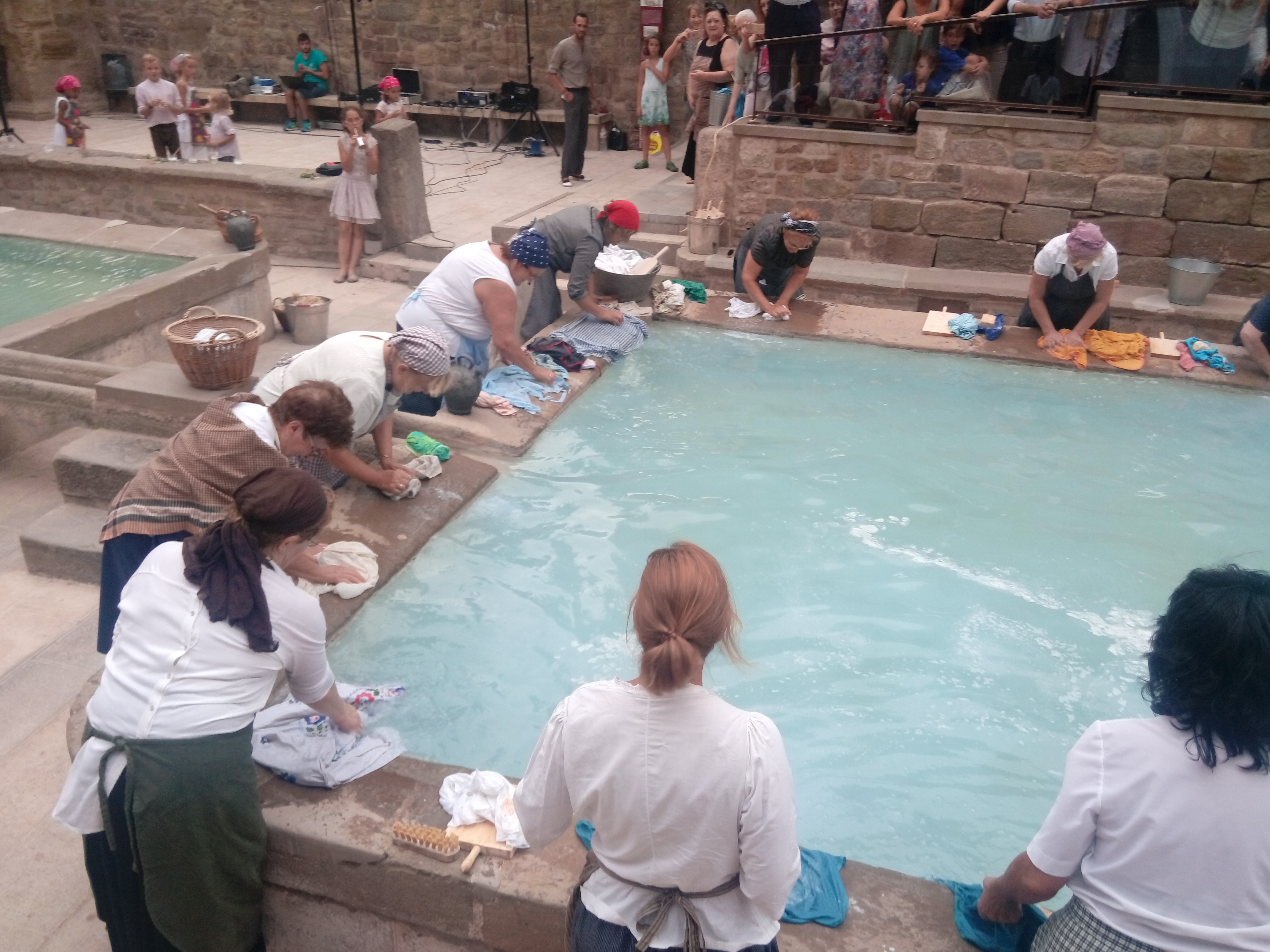 Així doncs, una vintena de dones avituallades a principis de segle i acompanyades d'algun home i d'alguns infants, han portat a terme la reconstrucció d'una rentada popular a les fonts del poble de la nostra vila. Aquests hi han reflectit el que passava al voltant de les fonts als anys trenta-quaranta.