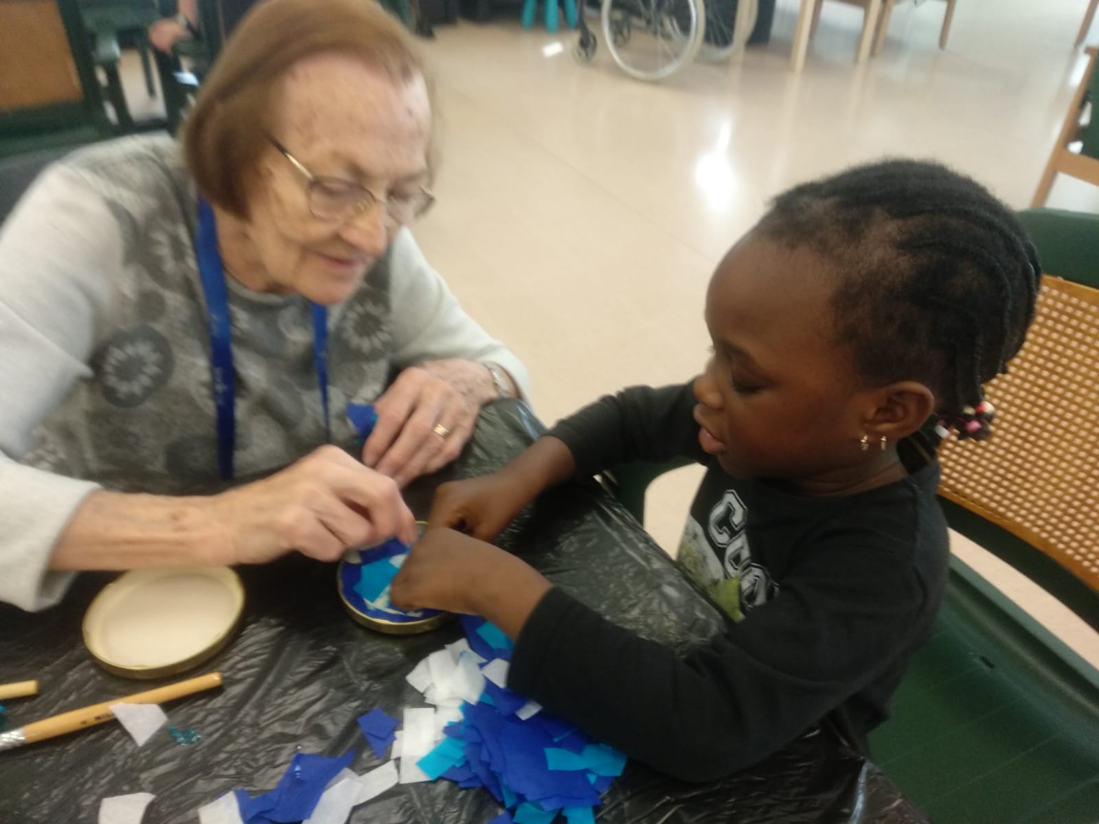 Aquest divendres, els alumnes de l'Escola Ramon Estadella han estat els que han fet la visita als avis i a les àvies, junts han compartit una estona de manualitats, els nens i nenes, una vintena, han elaborat un iman de nevera amb l'ajuda dels més grans.
